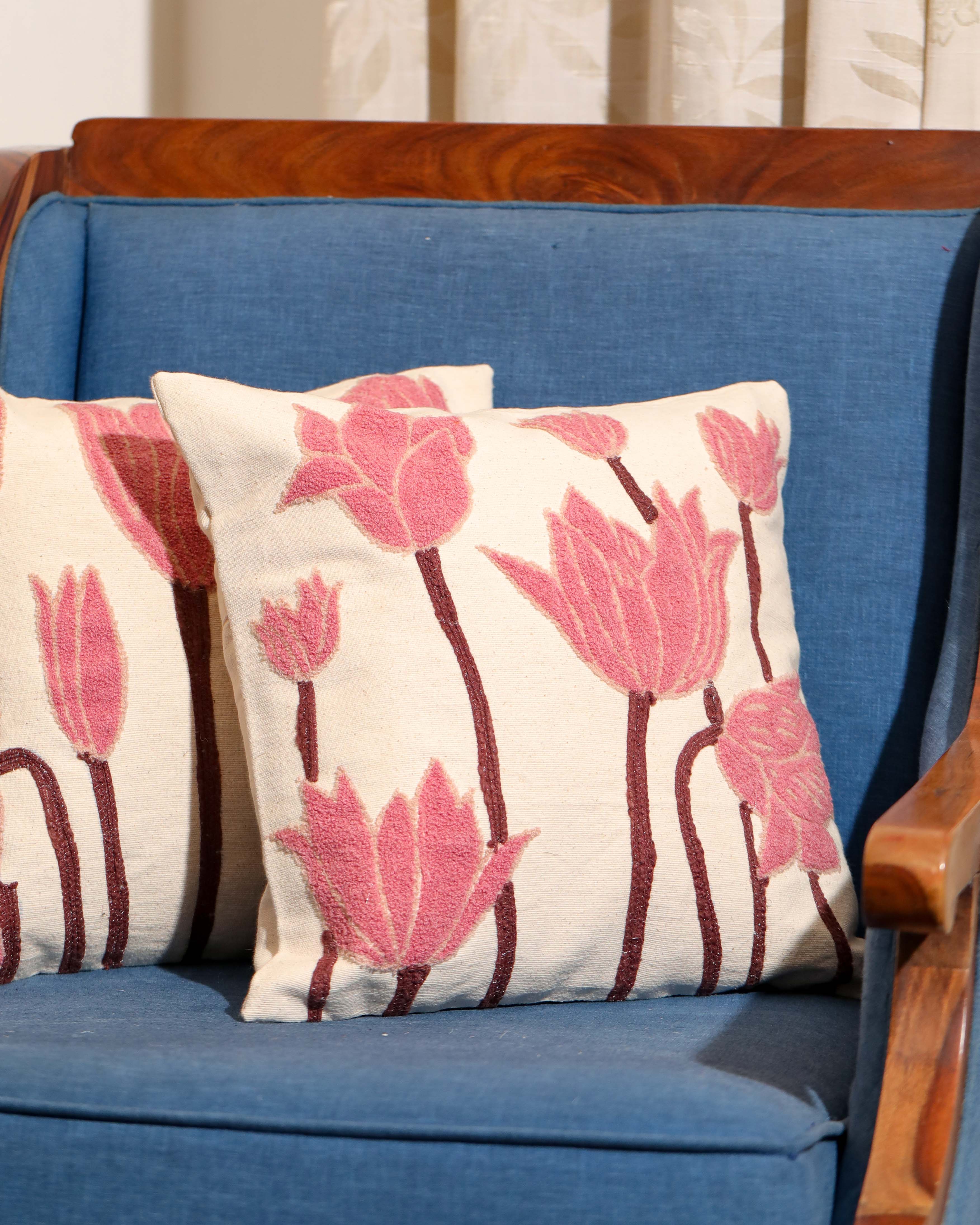 Serene Sojourn: A Hand-Embroidered Silk Cushion